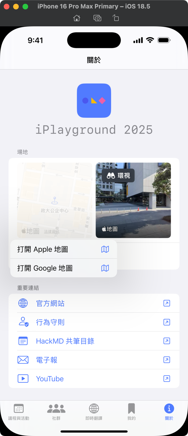 App 裡面有地圖跟環視,方便打開你 Apple Maps 或 Google Maps。這樣就一定不會跑錯了。