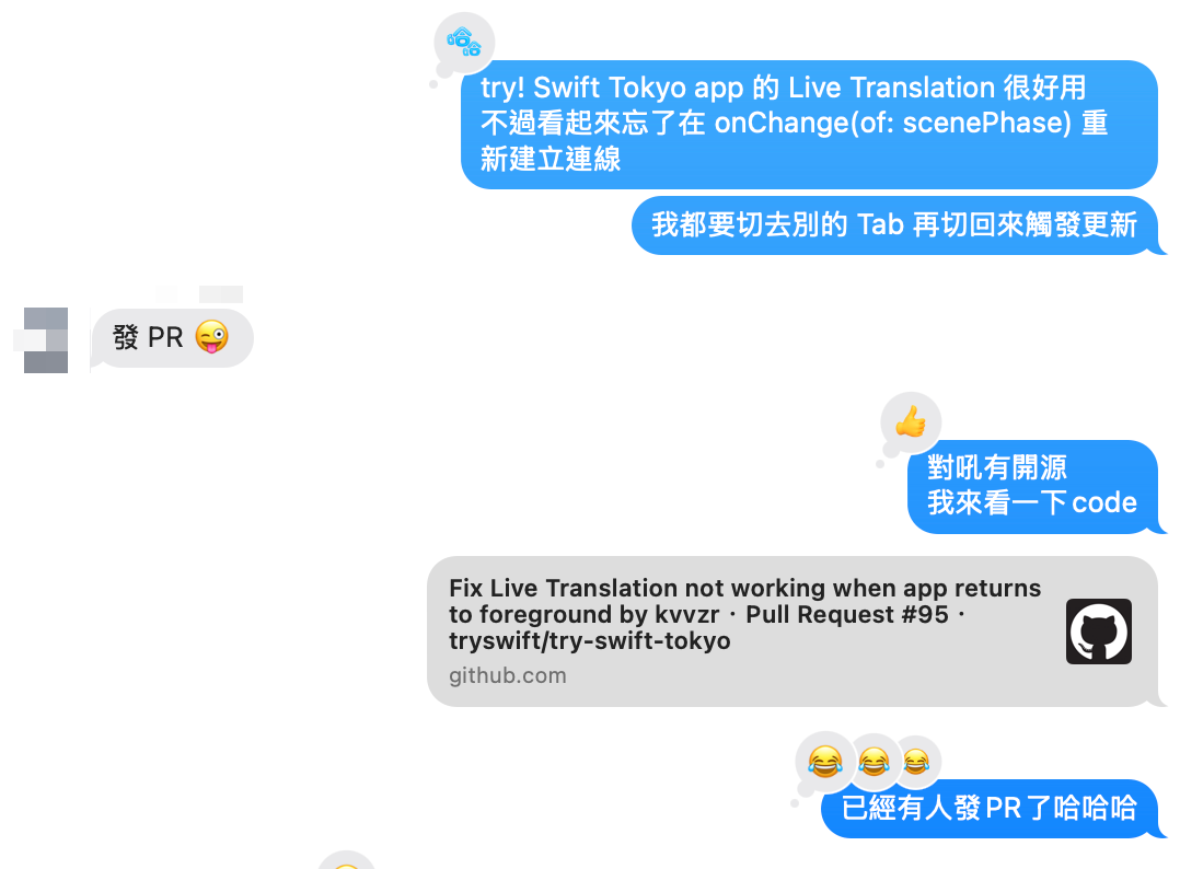 參加 try! Swift Tokyo 時,發現它們的 app 做得不錯,而且有開源。在第一天活動時,遇到 app 有個使用者體驗上的困擾,但應該不難修。想說我如果能修好,可以去發個 PR。