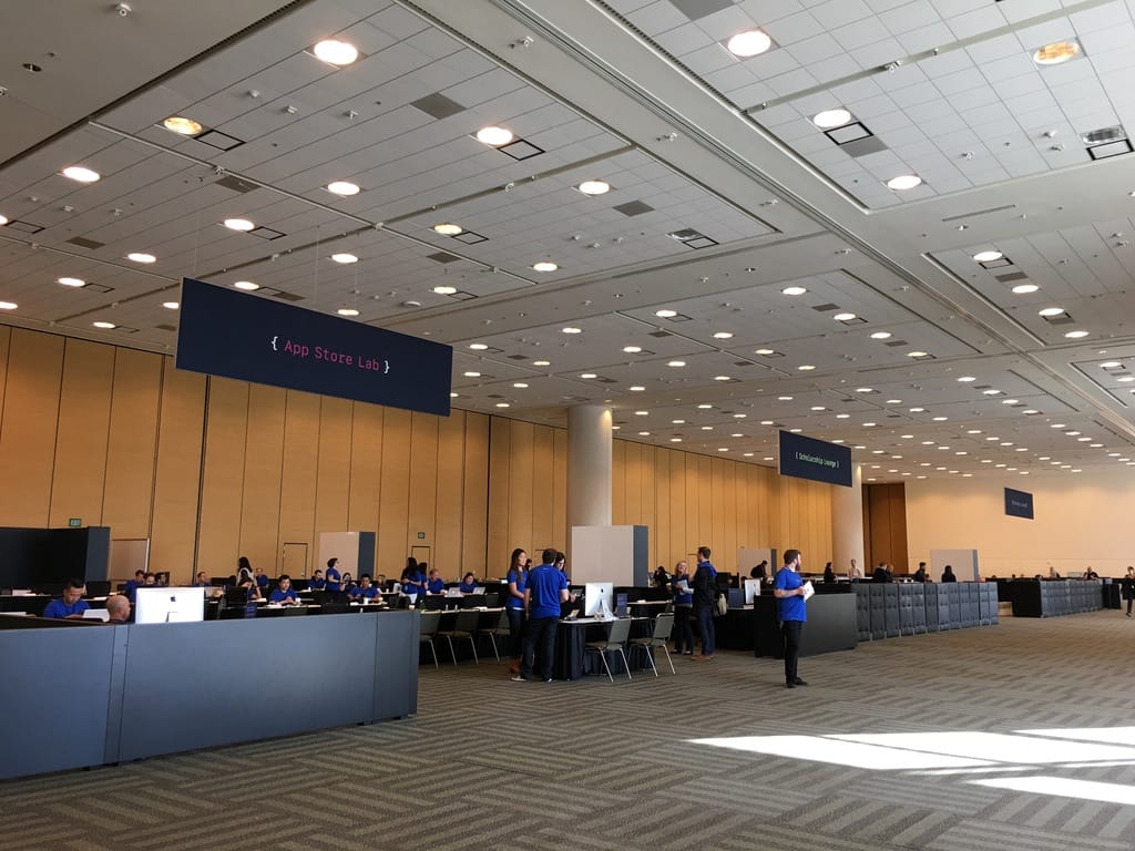 WWDC 有所謂的 Lab,就是面對面跟 Apple 員工諮詢各種問題的地方。不光是技術問題有 Lab 可以諮詢,產品設計與商業方面,也有對應的 Lab。大部分 Lab 都需要事先預約,會有人管控出入。雖然叫做 Lab,其實就是在展場臨時圍起來一塊區域。